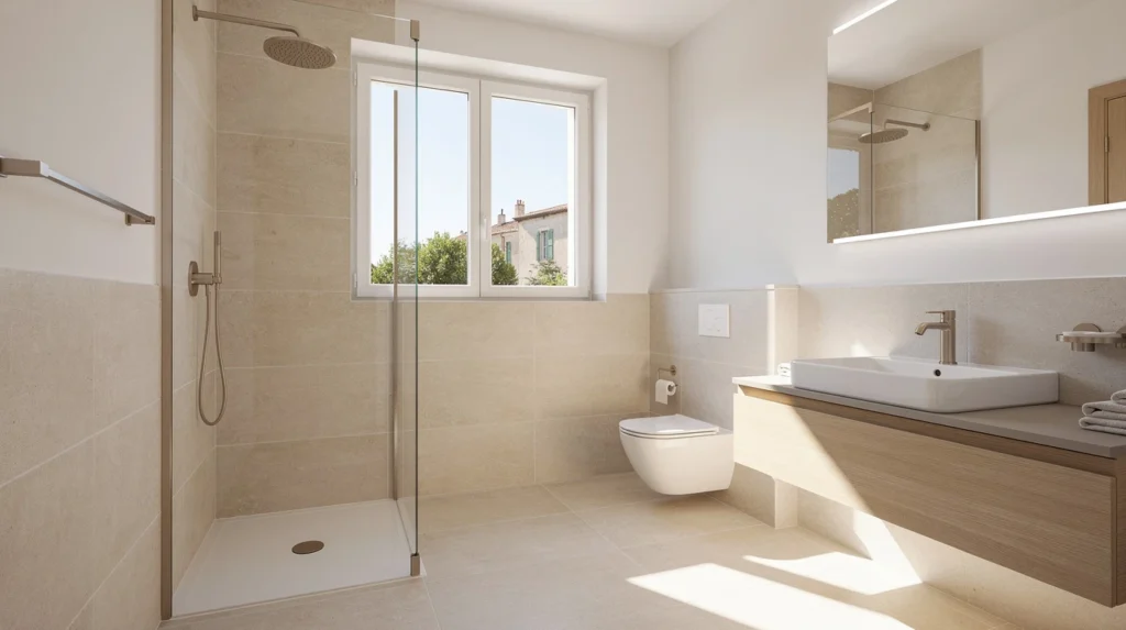 Les douches à l’italienne, équipées de receveurs extra-plats et de barres d’appui, offrent un accès facilité. Par ailleurs, il est possible d’installer des sièges muraux, des robinetteries thermostatiques et des revêtements antidérapants pour sécuriser les déplacements. Ces aménagements figurent dans tout devis salle de bains Marseille personnalisé.